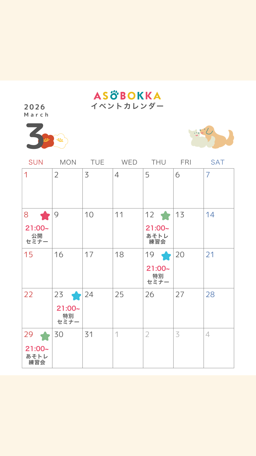 ✏️ < 今月の特別セミナーは「はみがき」と「多頭飼い」!