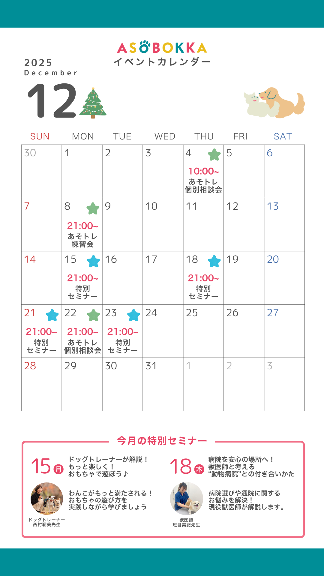 ページの最後には今月のイベントカレンダーもご用意🙌